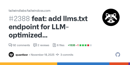 Add /llms.txt endpoint that serves a concatenated, text-only version of all Tailwind CSS documentation pages optimized for Large Language Model consumption.