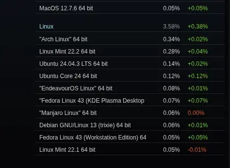 I would have thought the Linux share would be mostly made up of steam decks, but seems that’s not the case!