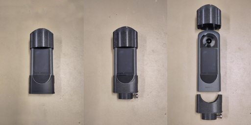 360° camera owners know how insanely delicate the lenses are. This is a 3D-printed cover to protect the lenses of a Ricoh Theta X camera, a base to bolt onto something heavy to create a stable stand and a variant to mount on a selfie stick.