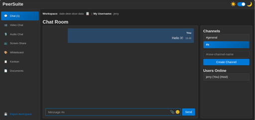 If you are hosting you send them the room code and a password. You can save a workspace and restart it later, so if you had an active chat it would reload automatically when you imported the file
