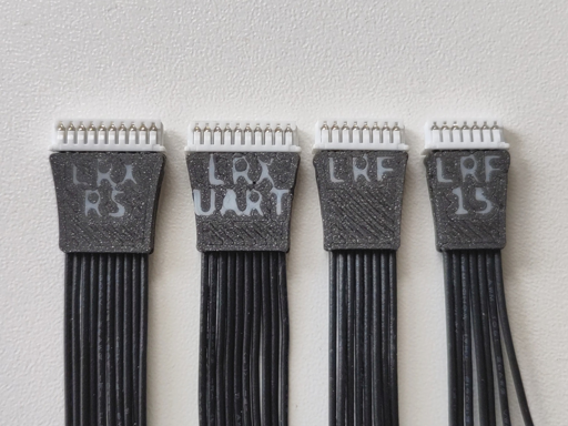 I’m printing those little cable pull tabs on our Prusa XL printer. In the models, I added markings to identify the type of cable, printed directly into the tabs with a different color PLA loaded on head #2.