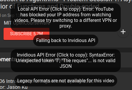 yt-dlp or embedded youtube links say “Sign in to confirm you’re not a bot” but for me the whole plan of this operation is that i don’t have to do that.